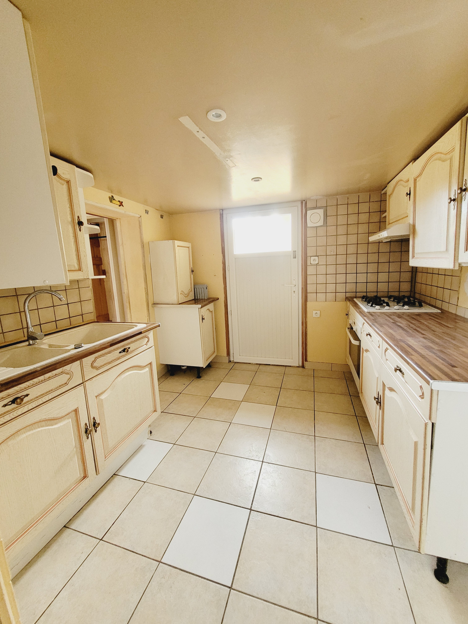pavillon jumelé d'un côté comprend au rez de chaussée sur élevé séjour salon, cuisine aménagée semi équipée, deux chambres, salle de douche,wc, au sous sol non enterré pièce principale, cuisine, chambre, salle de douche wc, et wc séparé, terrain 409m² dépendance chauffage gaz de ville chaudière neuve