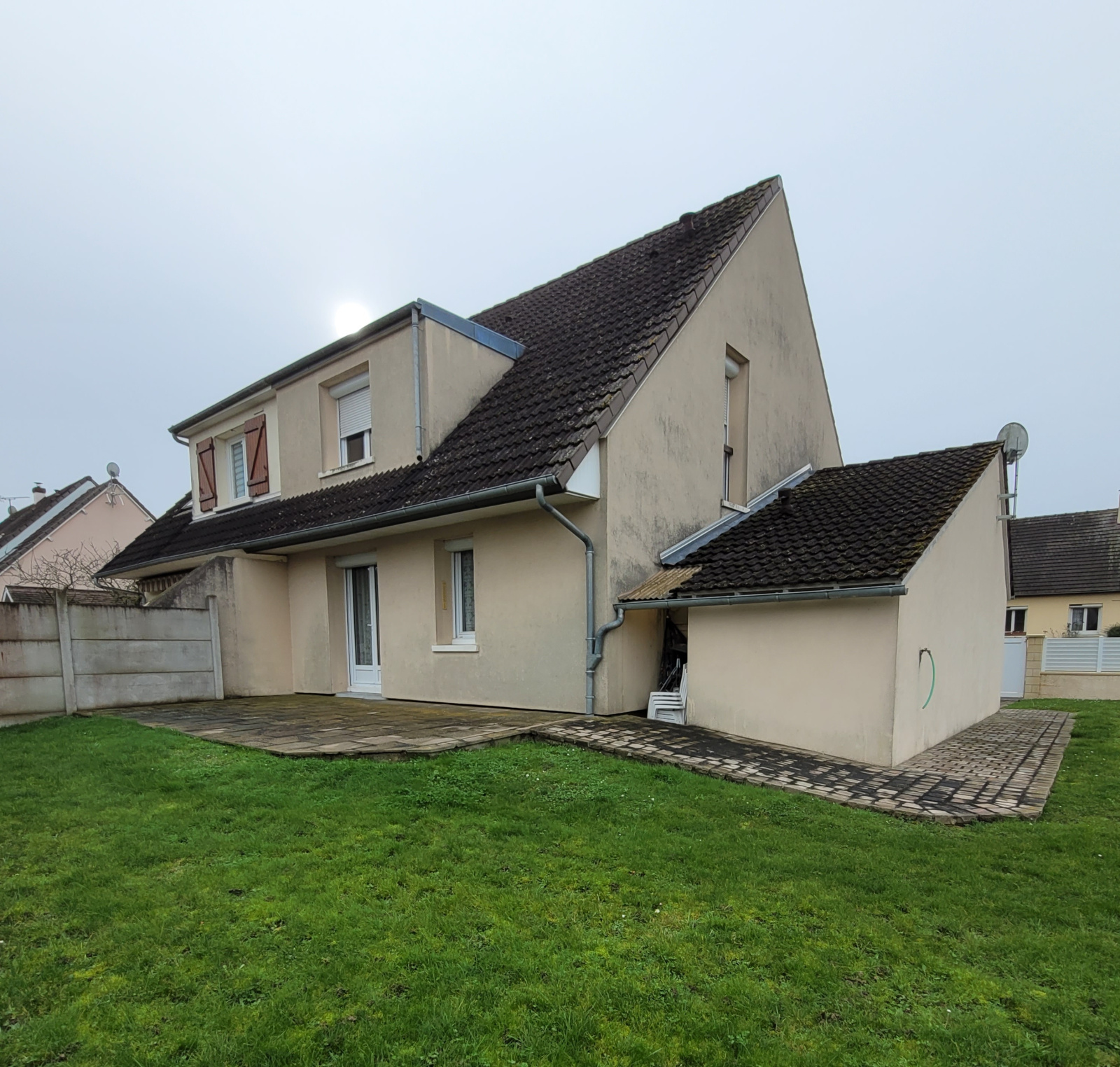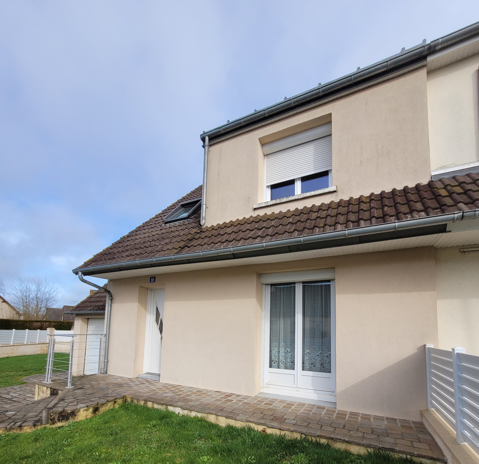 Maison jumelée d'un côté comprend entrée placard, séjour salon cuisine,wc, à l'étage trois chambres, salle de bains wc, garage, entièrement clos, fenêtres pvc volets roulants électriques terrain de 405m²